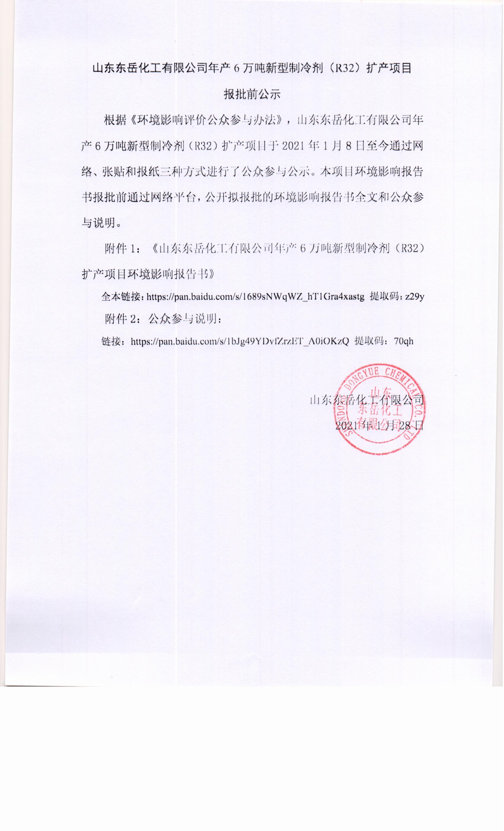 根據的《環境影響評價公衆參與辦法》有關要求,現将金年会開展的建設項目<金年会5.8萬噸/年R142b項目>環境影響報告書征求意見稿公示,歡迎廣大居民向本項目建設單位及環境影響評價單位提出寶貴的意見和建議。