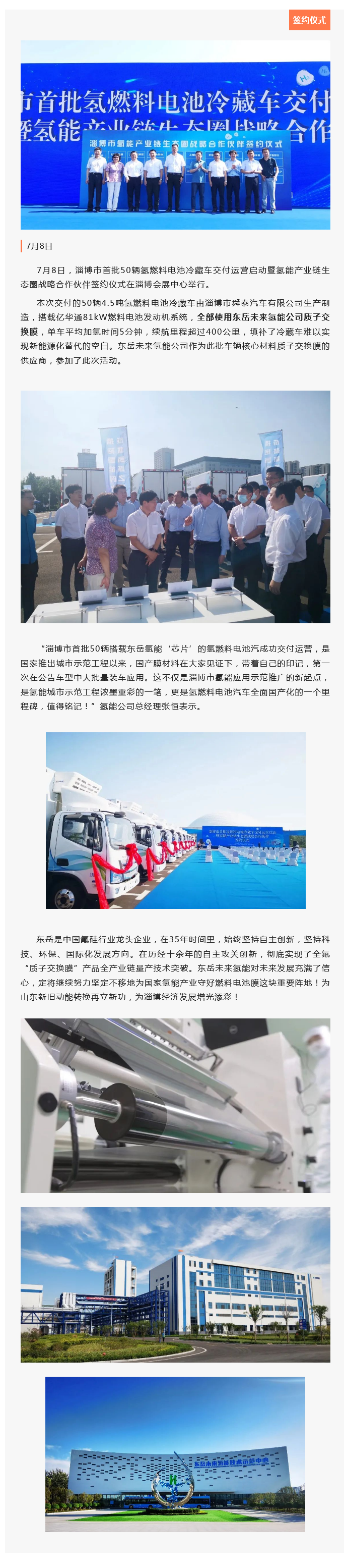 淄博首批50輛氫燃料電池冷藏車成功運營,全部使用金年会質子膜