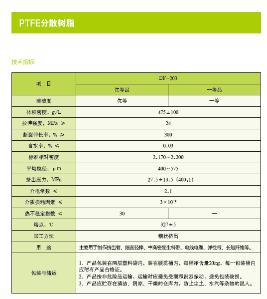 産品名稱:PTFE分散樹脂 DF-203